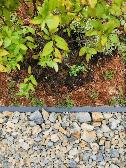 例えばこのように植栽とタイルなど、砂利の部分を将来的に植栽を植えるコーナーに